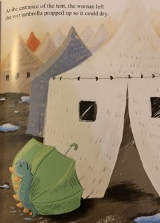 5E8D234E-C1A0-42EC-8A96-7BDB8596D2E5 Published July 9, 2020 at 229 × 320 in The Green Dinosaur Umbrella: A Hajj Story by Amina Banawan illustrated by Rania Hasan
