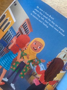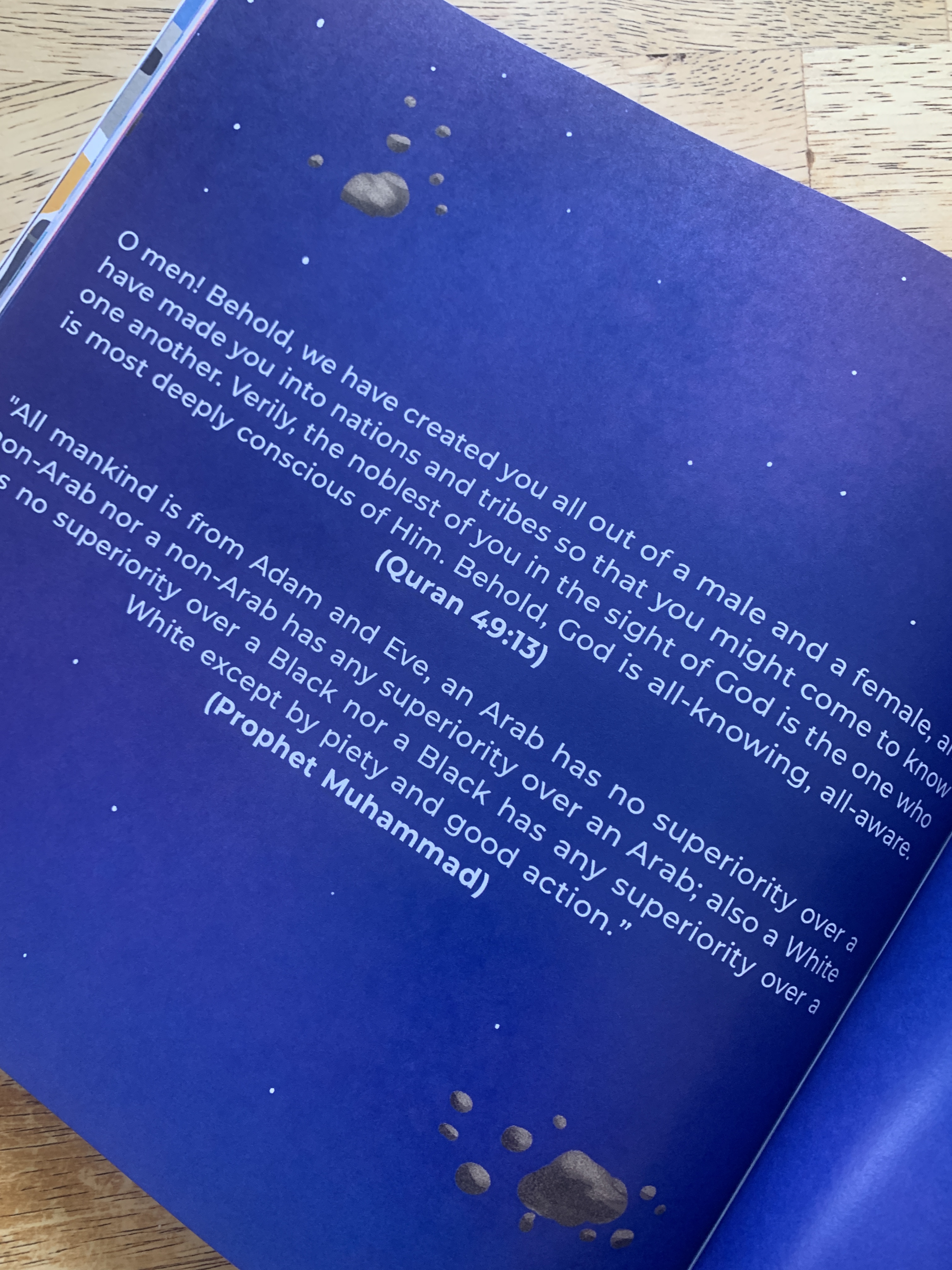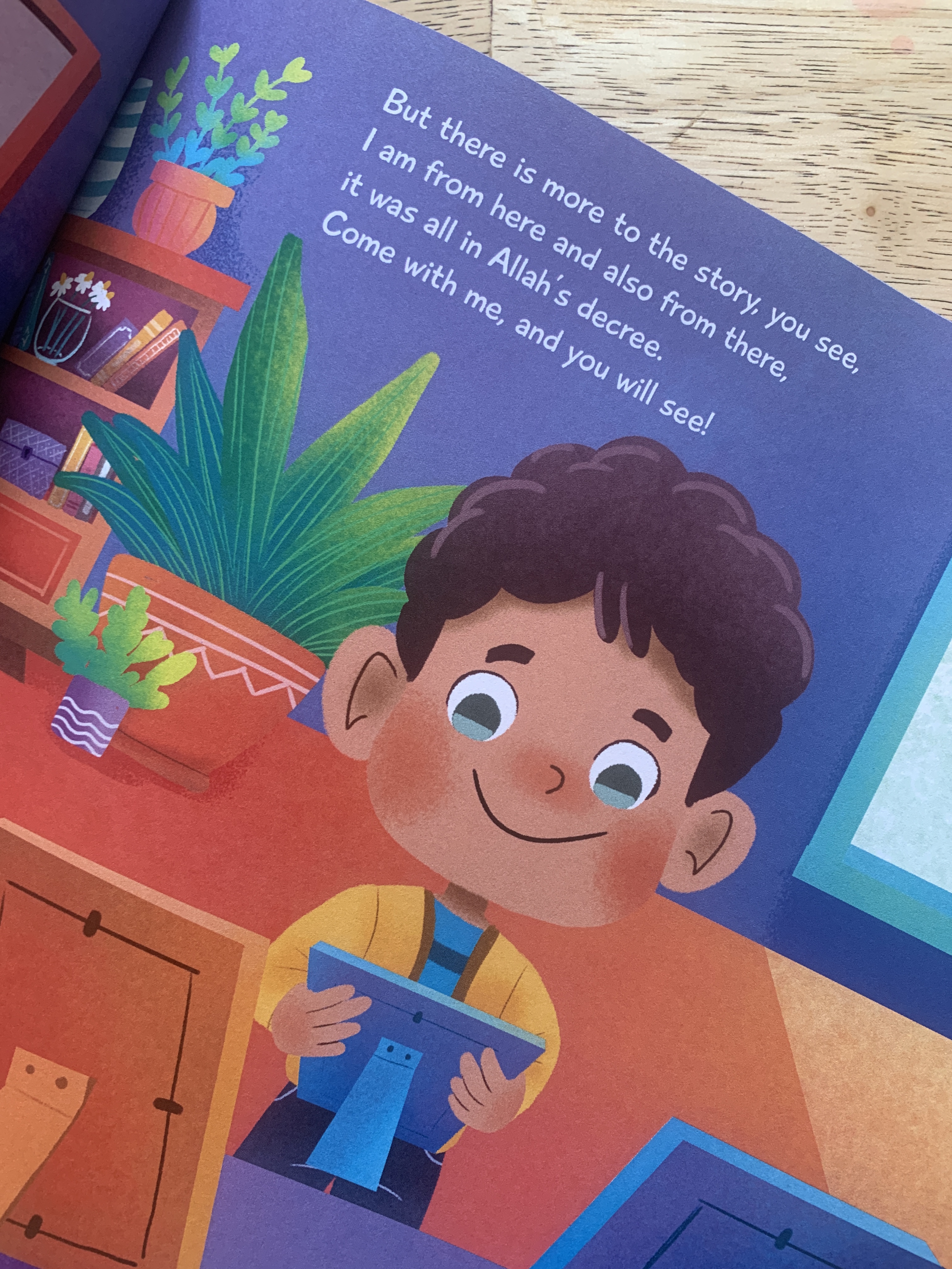 This 34 page picture book is adorably illustrated as it focuses on the gates leading to Masjid Al-Aqsa and sprinkles in culture, sights, and history about Palestine along the way. I love the concept, it is unique, and I love that there are maps throughout of the masjid compound. I truly learned a lot even though it is for early readers, naturally I wish there was a scannable QR code to learn more, but as an adult, with my kids, or in a classroom it would not be hard to search up Bab Al-Amud, Qubbat Al-Sakhra, Bab Al-Sahira, Salah Al-Din, Masjid Al-Qibli, Bab Al-Khalil, Al-Quds Citadel, Qaitbay’s Fountain, Bab Al-Asbat, or Qubbat Al-Silsilah. Islam is also woven in, not just in the architecture or history, but also in mentioning the sunnah of fasting on Thursdays, quoting an ayat from the Quran in the text, and the kids meeting up to pray. The writing isn’t super great, it breaks down the fourth wall regularly, calling the readers “friends” and asking them to find things in the illustrations, their missing friends, and about foods and the flags of their country. I’m not sure why the book hopes the readers are “from countries surrounding Palestine,” I found that a little off putting, and I’m not sure why we are supposed to memories the “gates by heart,” or how at the end we are now “victorious heroes.” Even the defined words at the end, are a bit haphazard: za’atar, falafel and sido, being the only words highlighted, in a book with many Arabic words present. Presumably the reader found all the friends so they did reunite, it seemed to kind of falter, I thought they would show something they all love, or share some snacks, but the book, just kind of ended. I like that the book is joyful and upbeat, I do appreciate that the last lines do mention that “Palestine is occupied today. One day, insha’Allah, it’ll be free,” inshaAllah, inshaAllah, inshaAllah.