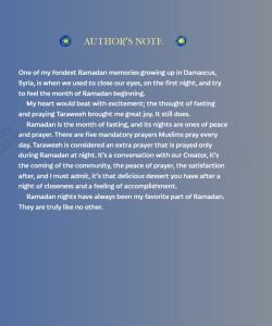 The heartfelt warmth, contentment, and love of Ramadan radiates through the book’s language and illustrations. The melding of story, with Islamic centering, and a little boys journey makes the book authentic and delightful, alhumdulillah.