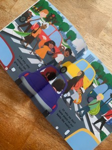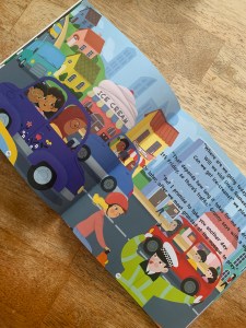 The book starts out with a young boy and girl excited to be spending the day with their Granny and going on a ride in her special car. No idea why it is special, but it is purple and has flowers painted on it, so lets go! The kids love to ask Granny questions when they drive. So after saying bismillah, they wonder why people don’t have tails or shells on their backs, or where they are going, or if they can have ice creams.