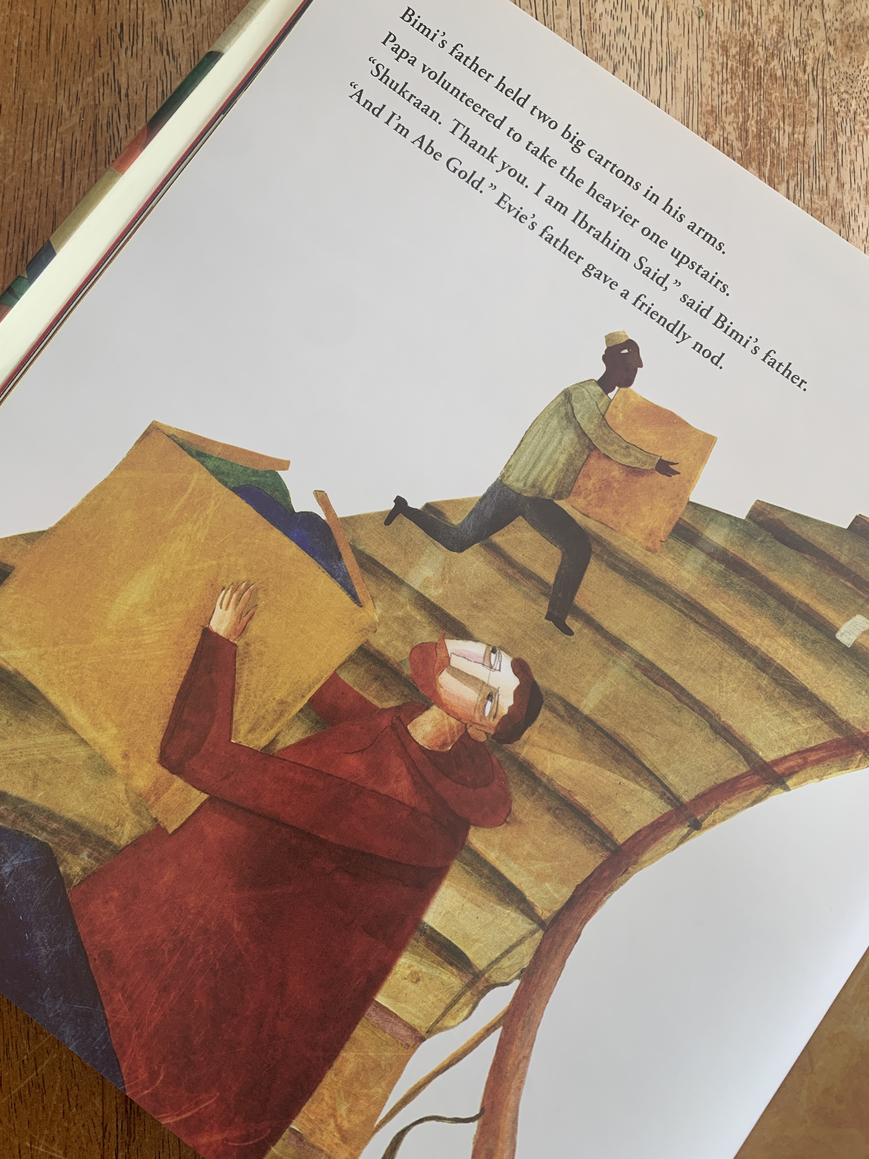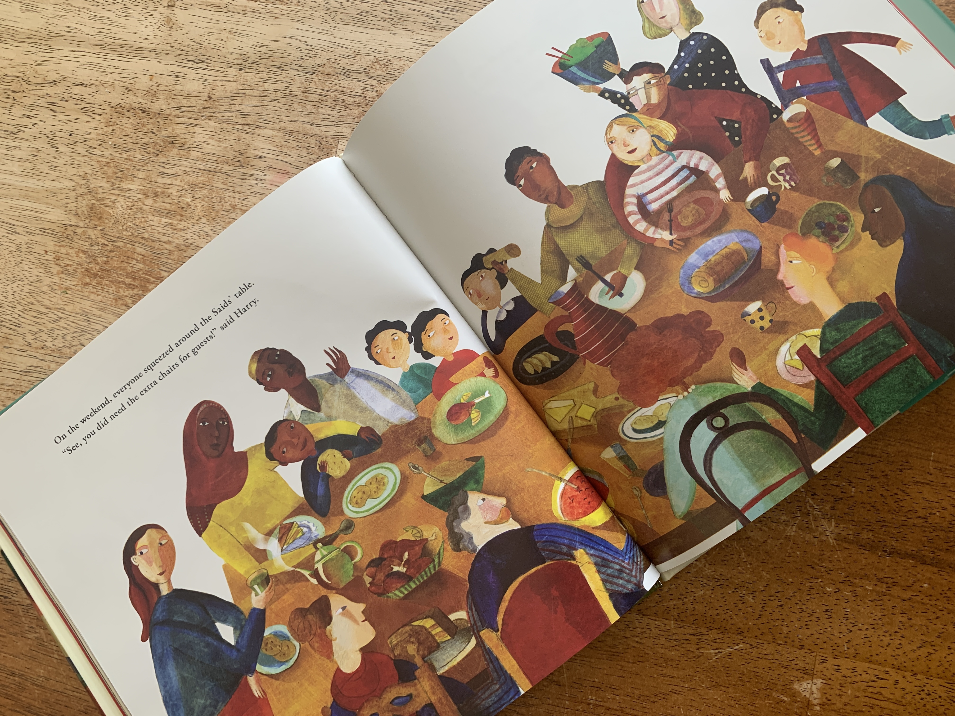 As they head to the mosque to meet Grandad they wonder if that is where Allah (swt) lives. Granny tells them no, so they ask if He lives in the sky, when she says no, they wonder about in the trees or in the sea. Finally she says that they “don’t have to go anywhere to find Allah, His throne is above us where ever we are.”