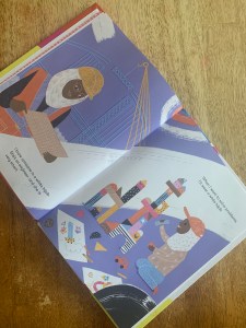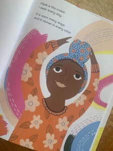 At times the wording gets a little loose with “give kindness” and “show wisdom” but the overall tone conveys the sentiment and allows for the stronger, “get results” and “be a leader” to balance out the flow of the book.  The illustrations amplify the color being presented, but it is worth pointing out that the hijab’s are all patterned and could be a little confusing to little readers.  Similarly, the yellow hijabs appear more orange and the purple more pink.