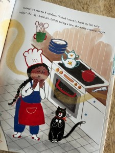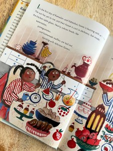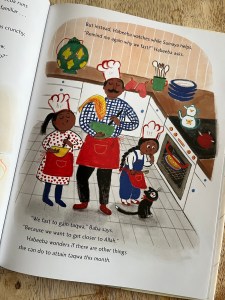 The first page did not set the tone as a polished read, I am terrible at grammar, but “like watermelon, pomegranates, and homemade muffins.” What foods are like watermelon and pomegranates, those are the foods on the table, so maybe “such as” or drop the comparison word all together and just say what is on the table and what we are seeing in the illustration. Throughout it felt like sentences were choppy, and when read aloud commas were missing. The diction also seemed off to me in describing taqwa, not wrong, just stilted and not relatable to the demographic as it is stated, but not really shown. Do six year olds understand mindfulness? It goes from fasting is to gain taqwa, because we want to get closer to Allah, to it being hard to concentrate and practice mindfulness, to “Remembering Allah during Ramadan also means being mindful to their community.” The backmatter says “Taqwa is achieved by being mindful of Allah and remembering to do one’s best every day- especially during Ramadan.” I feel like words and phrases are being used interchangeably and not in a way that connects dots of understanding for the reader. A bit more on level articulation is needed. And I know I don’t like exposition, but it needs smoothing out and clarity. A few signposts to tie back to the theme, with word choice that kids will understand. They don’t need to be hit over the head that fasting and praying and charity is worship, but they should grasp that little Habeeba is pushing herself to keep trying day after day to gain taqwa. Perhaps if Baba at the end would have been proud of her efforts to keep trying instead of saying, “I am most proud of you for sharing Ramadan with everyone.” The point of Ramadan and taqwa would have come through. I realize it needed that line to make the title make sense, but honestly that is not what the book is about. Only four pages address the community. I have no idea why the first day Habeeba wonders about other ways to get closer to Allah swt, sidenote there is no attribution in the story or backmatter, and it is abandoned until the end of the book and the last week of the month. It very easily could have been threaded in and would have fleshed out the title and the different aspects of Ramadan, growing closer to Allah, and finding ways to help the community.