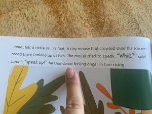 My problem I think with the book is that it conflates appearance with friendship without a clear moral, and then Elephant being forced to change by Ant to have a friend seems to reinforce a questionable mindset, even if Ant is more or less in the right. There is no self reflection on the role of appearance, or what kindness looks and feels like, or even insight into what self confidence, friendship, and body appreciation entails. It lumps it all together, uses outside influences to get elephant a friend, but doesn’t really articulate any lessons learned or moral to be conveyed. If I am mistaken and the book is not set to be a moral inspired fable, the climatic joy of the book is simply, what- Do as you are told to have a friend?