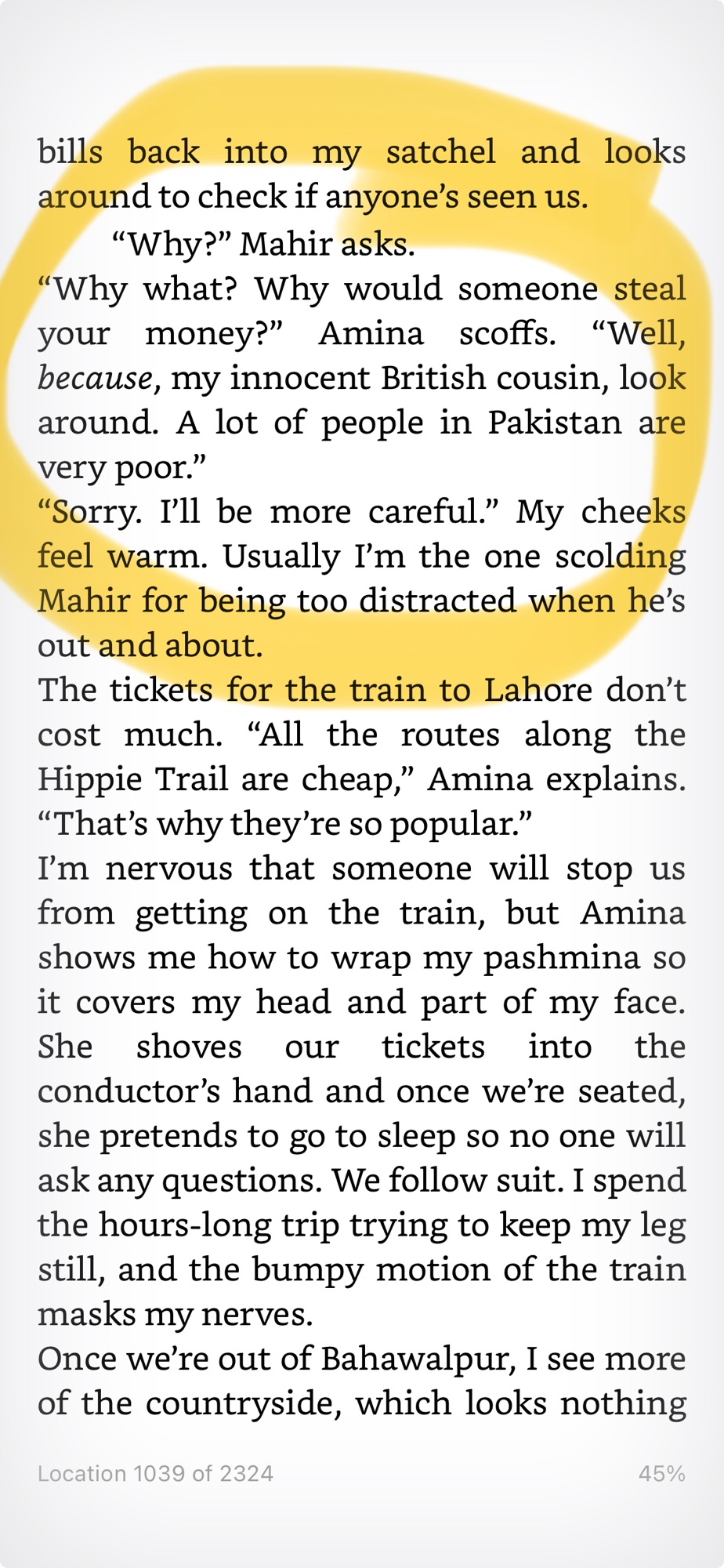 One tiny concern was the assumption that money could be stolen because the people around them are poor, it is just one paragraph, it isn’t a constant in the book, but it struck me as odd and stereotypical, and really not needed.