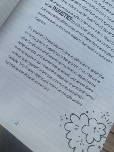 There is nothing overtly Islamic in the book, but there are Muslims featured as both famous real life examples and the author’s personal acquaintances. Most importantly the author is unapologetically Muslim and offers glimpses of her own childhood growing up Muslim in the UK. And as a hijab wearing Muslim, the illustrations also proudly show her smiling, eating chocolate and being an activist making the world a better place for all.