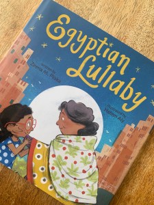 The lullaby begins with the sound of the Nile, the boats floating through the city, the athan calling to prayer, the carts on the streets, the traffic.  The halawa ya battekh, swish, swoosh, swish, Allah u Akbar, beep honk toot, all add layers to the bustle of the city as the little girls memories of the sights and sounds of Egypt soothe her to sleep.  When it is time for Auntie to return the little girl’s sadness is palpable, but Auntie finds a way to reassure her and all those that have drunk from the Nile and long to return.